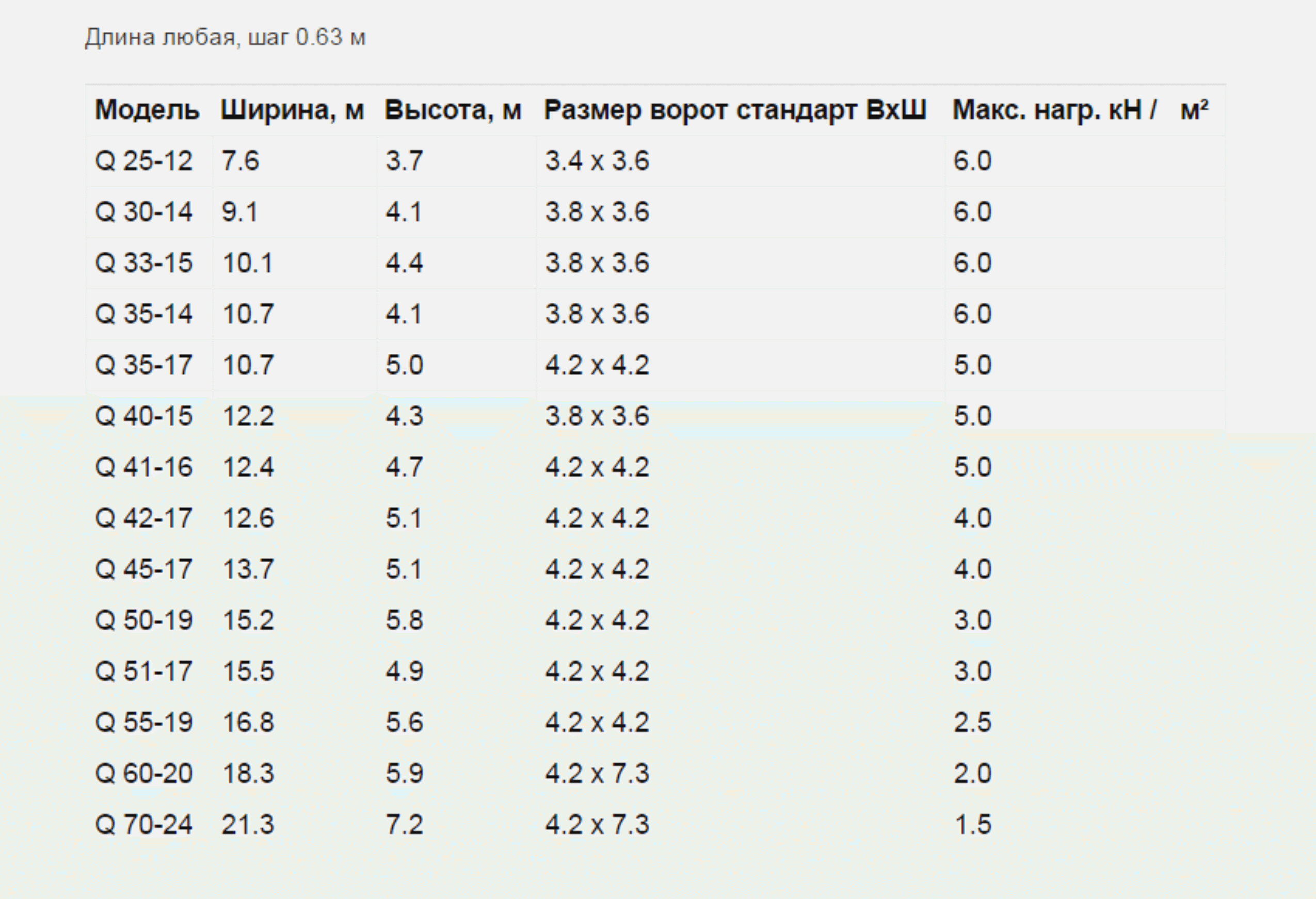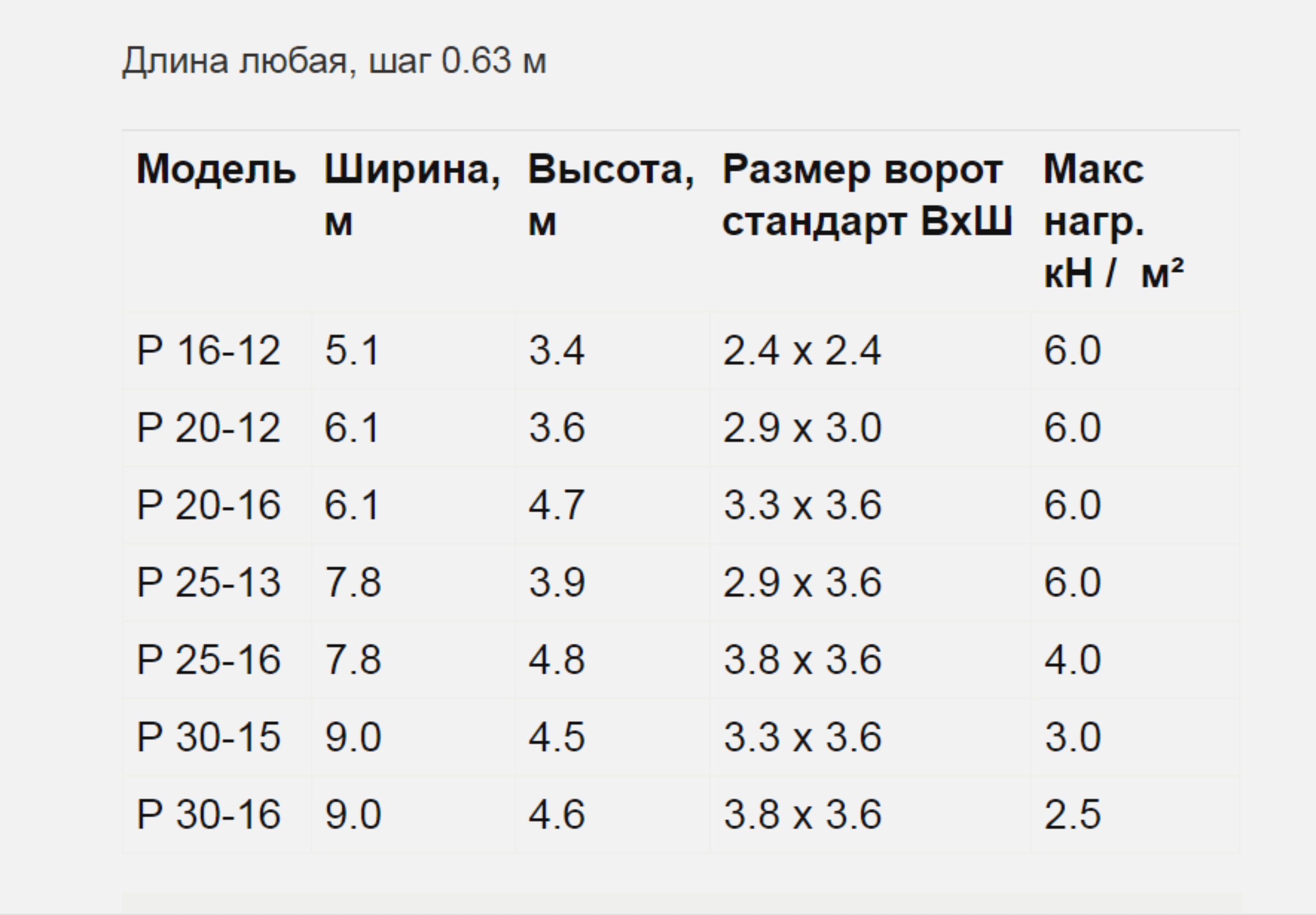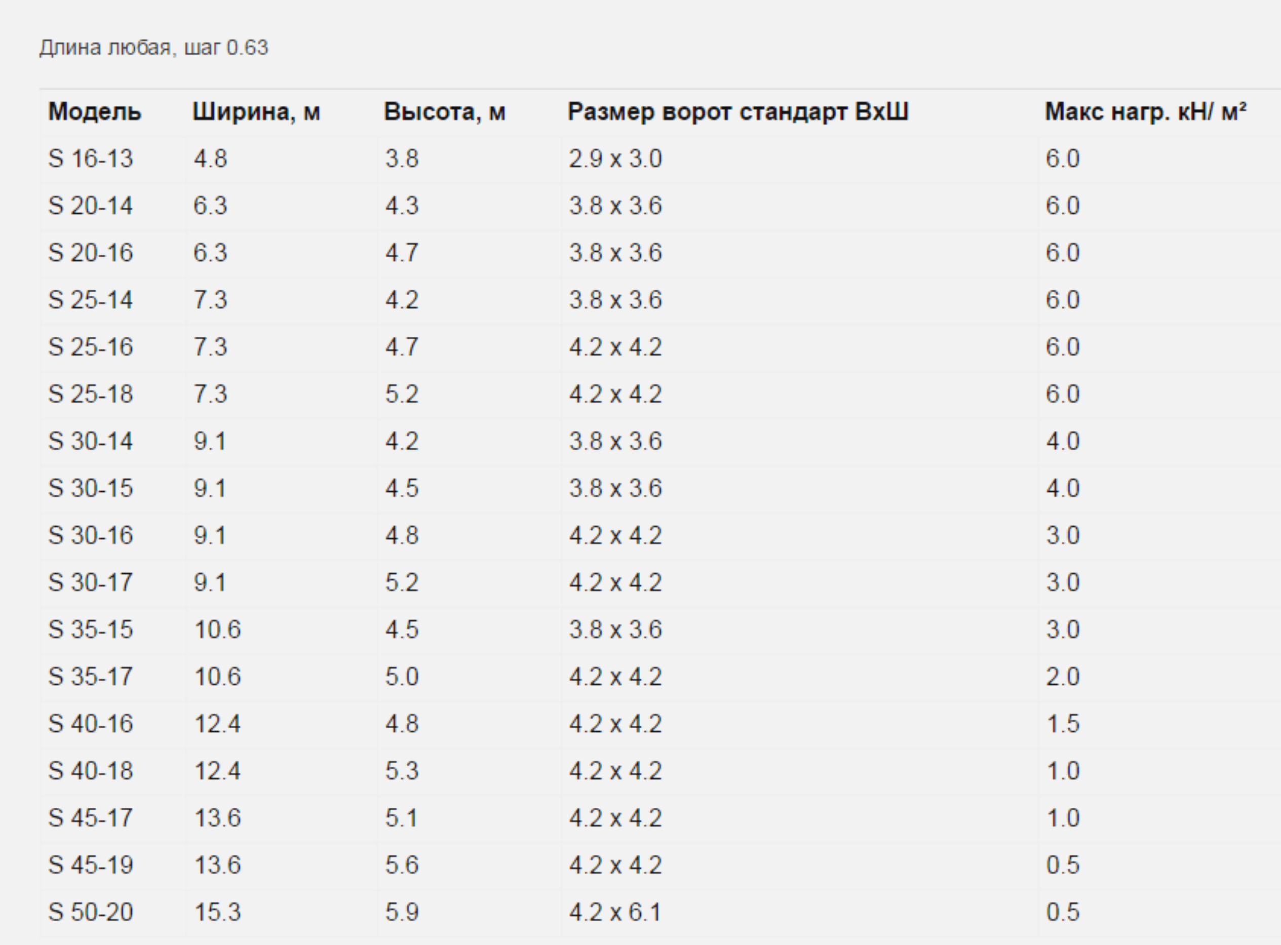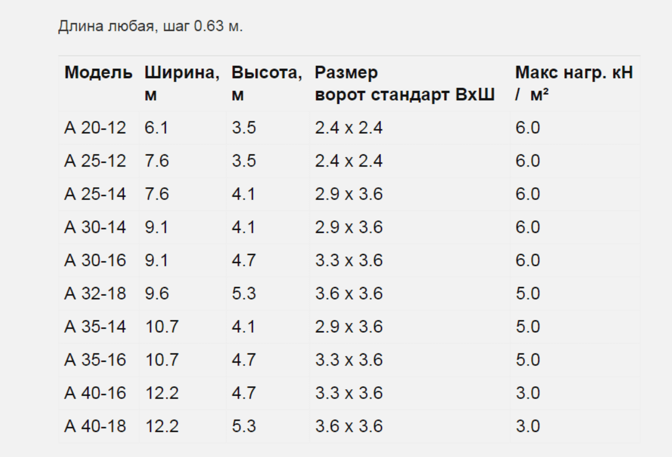 Модели Ангаров и таблица размеров